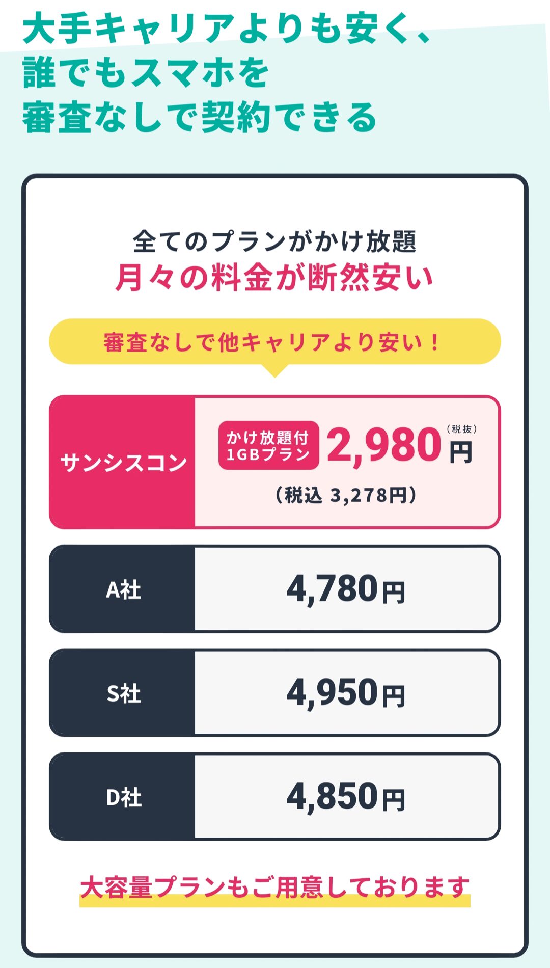 大手キャリヤよりも安い!