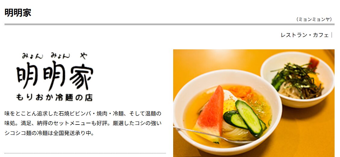 駅ビル・フェザンでさっと盛岡冷麺を食べたい時におすすめなのが「明明家(みょんみょんや)」です。