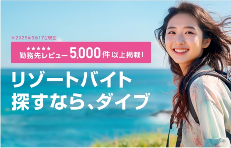 ダイブは、リゾートバイト業界で知名度が高く、特に温泉地やビーチリゾート、スキー場などで豊富な求人を取り扱っている派遣会社です。ダイブの強みは、どんなエリアでも幅広い選択肢があり、地方から観光地まで多彩な求人が揃っています。