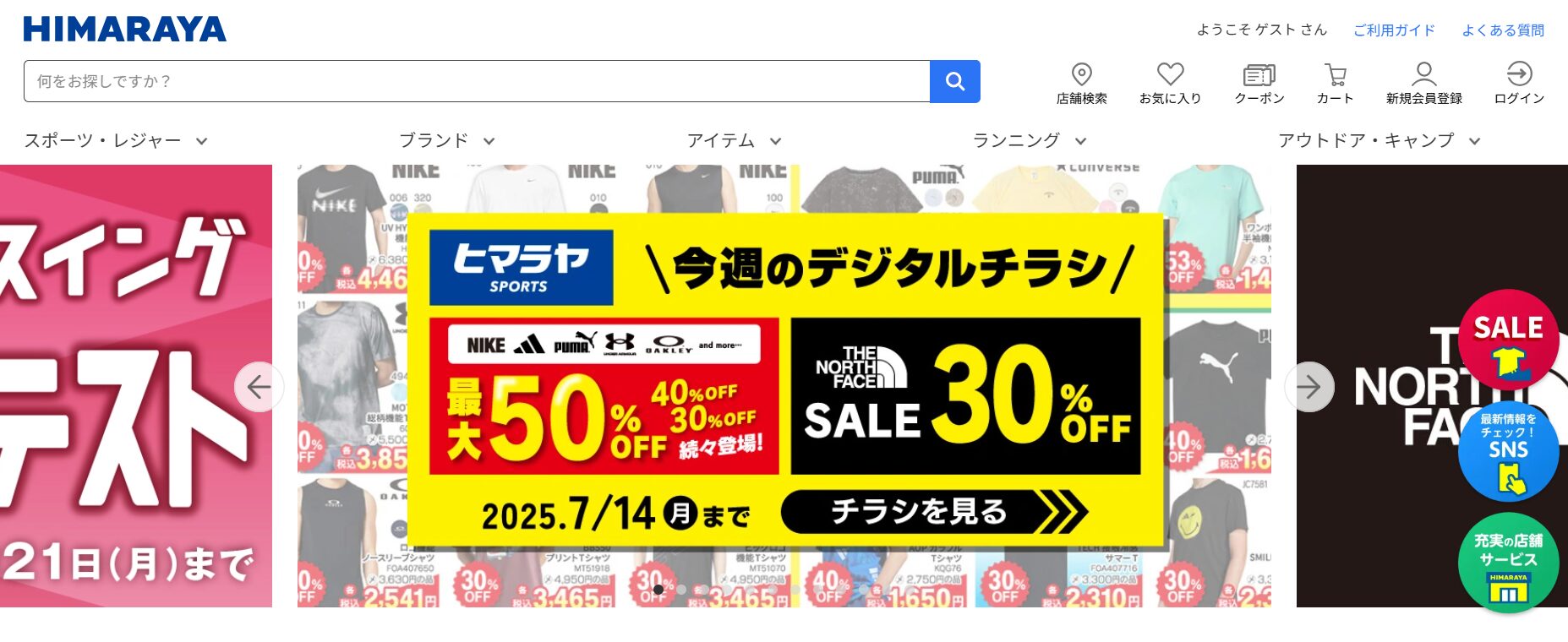 全国に約90店舗を構える大型スポーツショップ「ヒマラヤ」の通販サイトです。