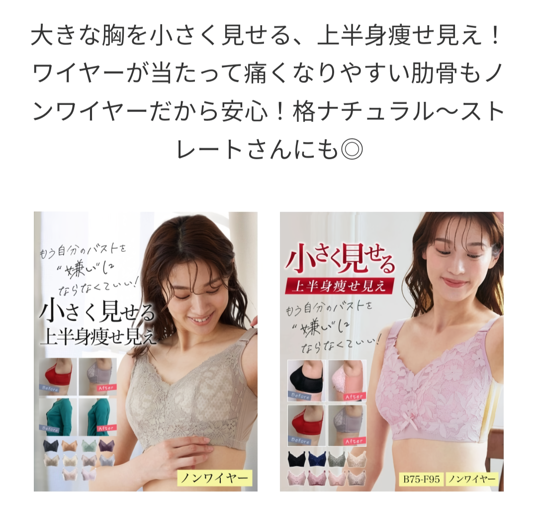 | ラディアンヌ | 低〜中価格帯 | 軽量・通気性・自然なシルエット | 20代後半〜30代 | モダン・スタイリッシュ | オンライン中心 |