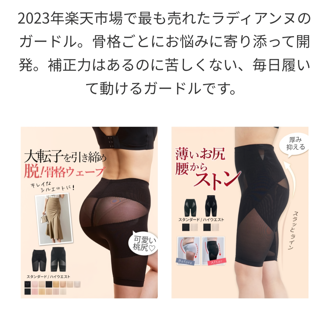 ラディアンヌの商品は、自然な美しさを追求する女性におすすめです。快適な着け心地と効果的な補正のバランスが取れた商品ラインナップが魅力です。