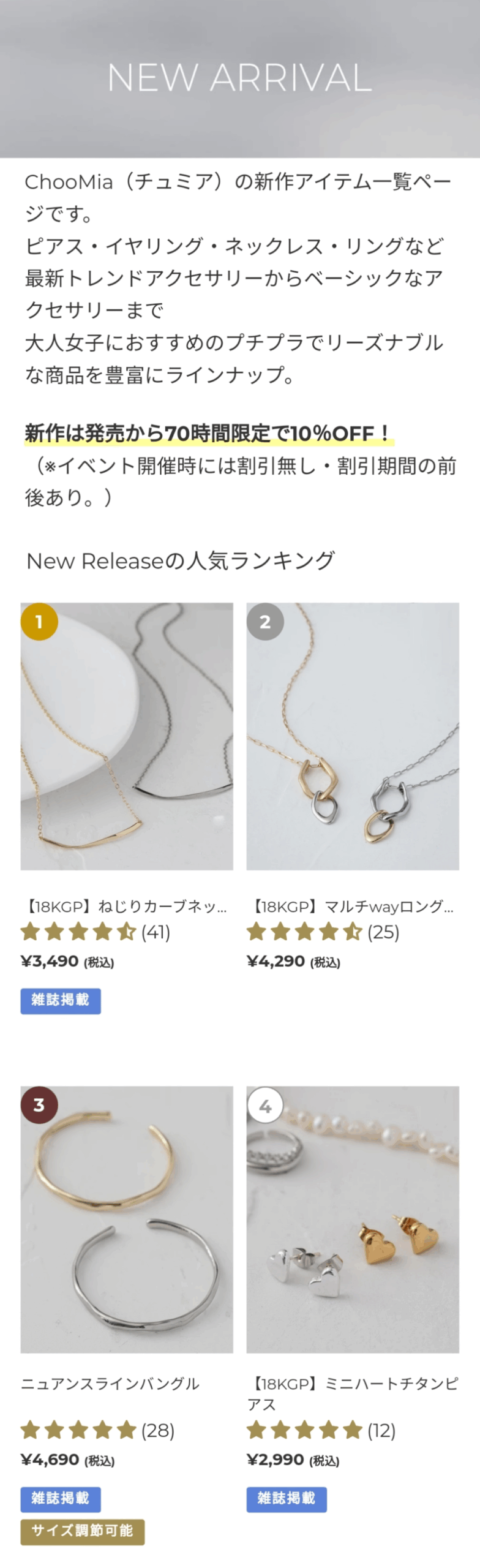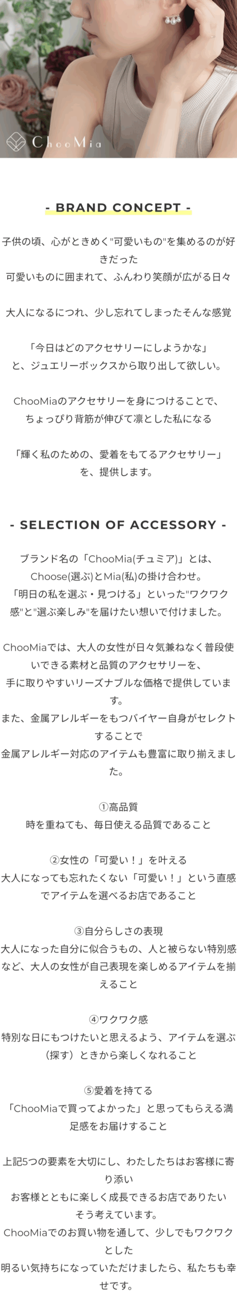 ChooMiaはプチプラながら高品質で、「大人のプチプラアクセサリーブランド」の名に恥じない商品を提供しています。上品で繊細なデザインのアクセサリーが豊富で、日常使いからフォーマルシーンまで幅広く活用できます。