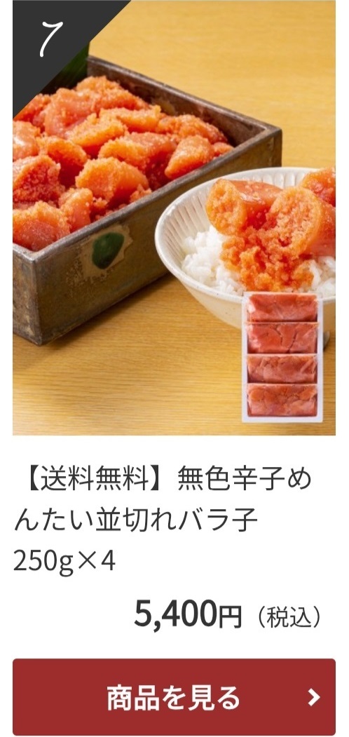 特徴と魅力明太子の本場・福岡で長年愛されている福さ屋。伝統的な製法に基づき、唐辛子の辛味とだしの旨味が絶妙にマッチした深い味わいが魅力です。明太子の粒感や食感にこだわり、厳選された新鮮なスケトウダラの卵だけを使用。贈答用ギフトでは、豪華な詰め合わせや特別パッケージが用意されており、贈り物としても非常に華やかな印象を与えます。